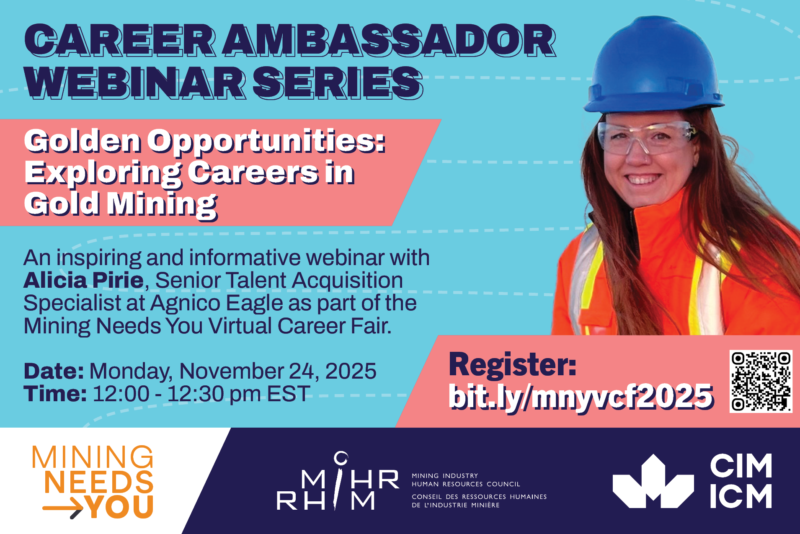 Please note: This webinar is part of the Mining Needs You Virtual Career Fair (VCF) and will be offered in English only. To attend, register as a job seeker at the VCF here.